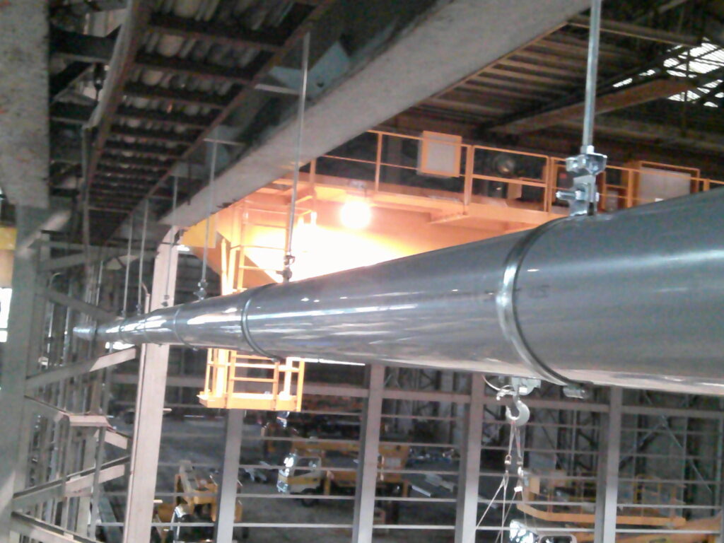 ルーフドレン配管の設置高が地上から約10mであり、配管引換え長が約40mありましたので高所作業車を用いて、徐々に移動しながら工事を進捗致しました。