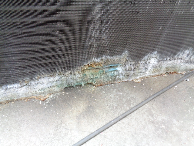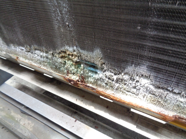 点検の結果、経年劣化により室外機熱交換器からガス漏れしている事が分かりました。