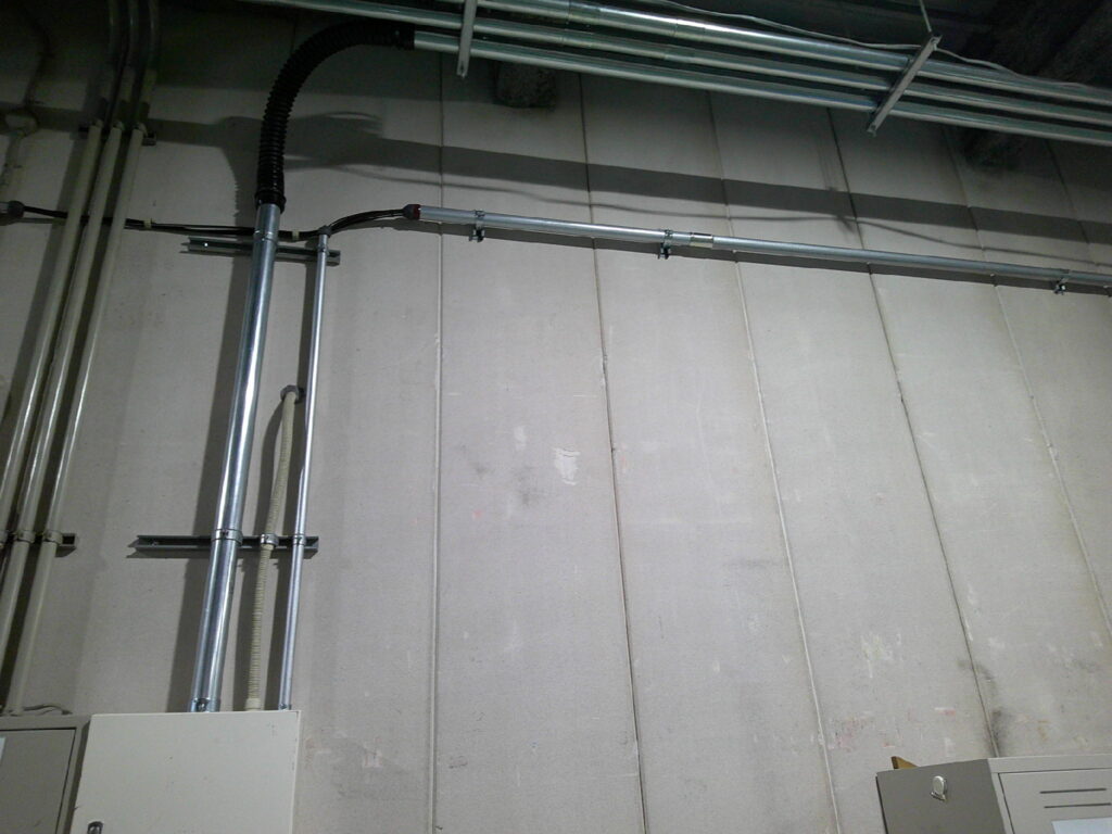 配線の長さ・鉄管本数もよく計算して余りが出ない様に留意致しました。
