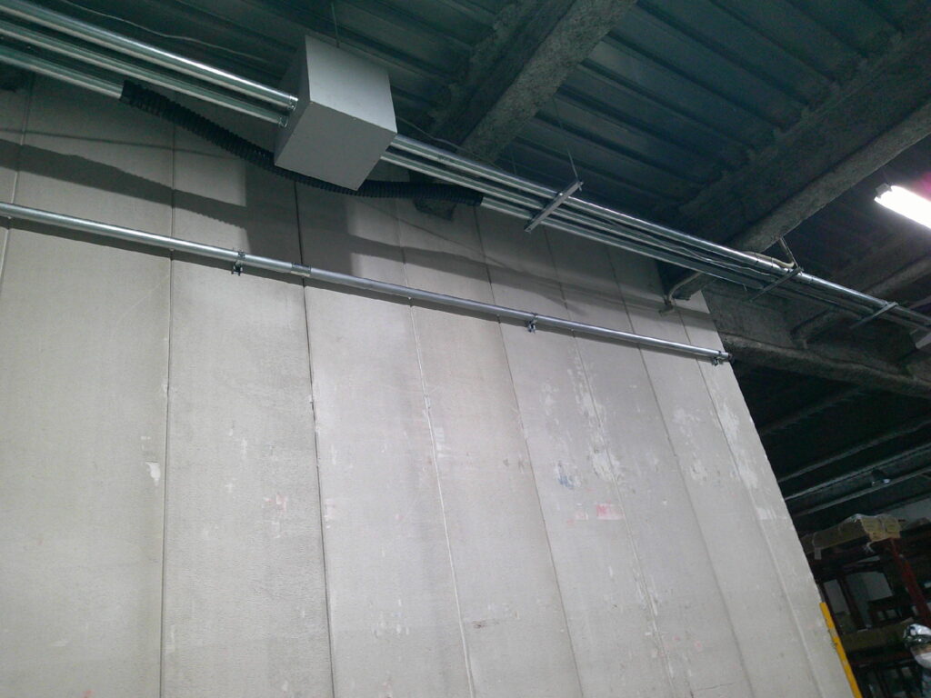 留意した点は、工程です。2日間という短期工程で鉄管固定及び配線工事を行わなければ