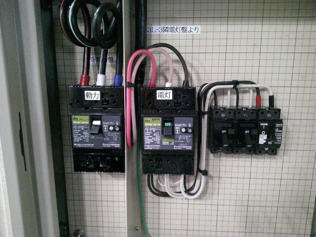 現在設置されている動力盤から枝分けして、別箇所に配電盤とブレーカーを設置し