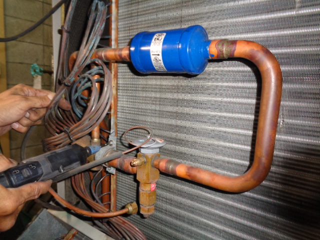 室内機内の熱交換器に温度式膨張弁が取付けられており、経年劣化の為