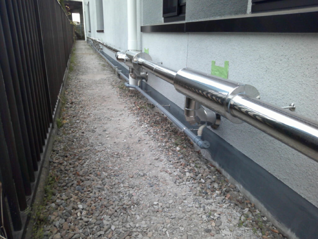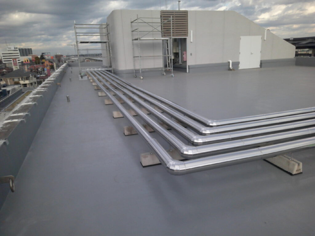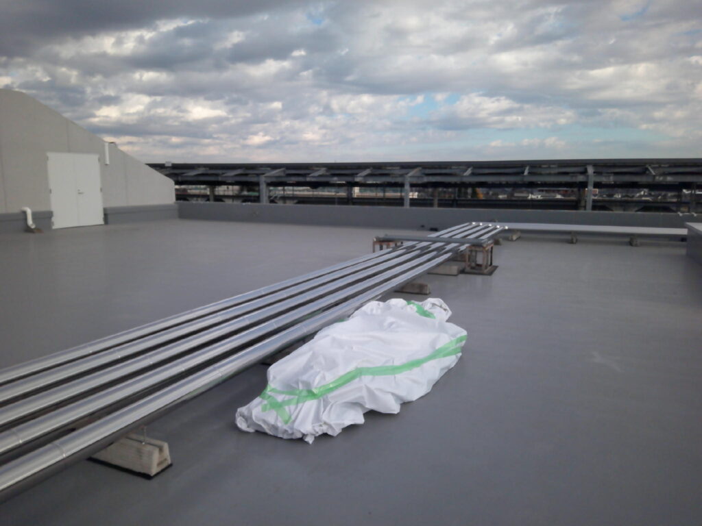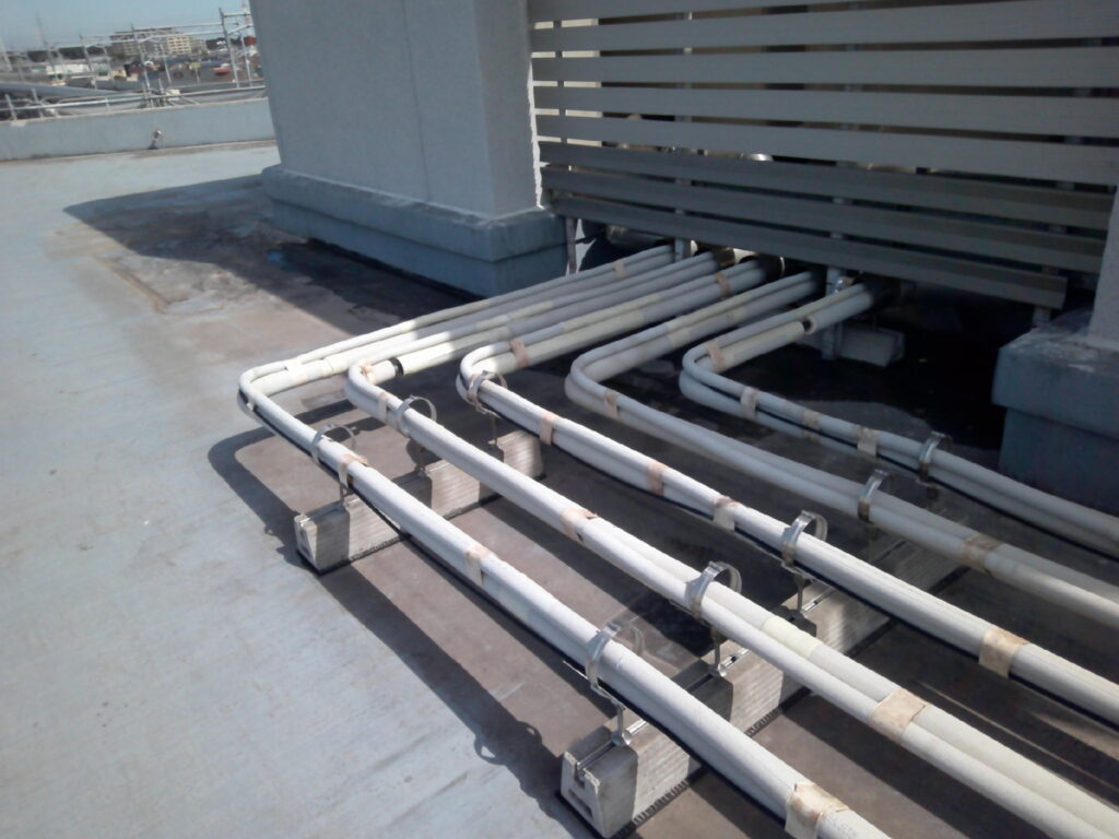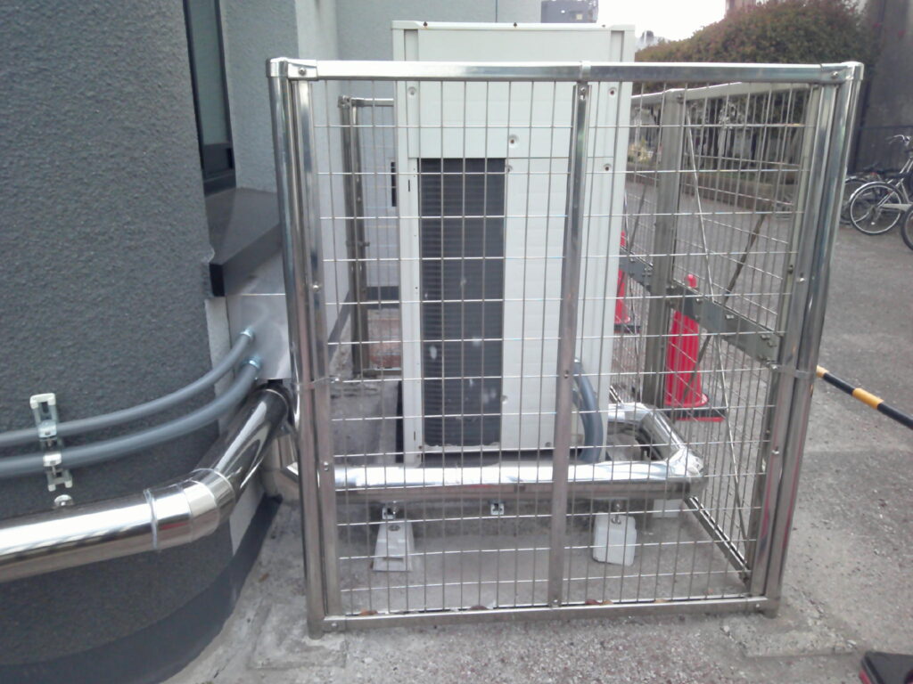 この度、全面的な外壁塗装工事と防水工事・一部内装改修工事に伴い、空調設備工事・換気設備工事の御依頼を頂戴致しました。内訳は屋上のステンレスラッキング全交換・各階男女トイレの角ダクト交換・空調機械室内大型給気ダクトの加重補強工事・1階業務用エアコンの入替え工事並びに冷媒配管・ドレン配管交換工事・室外機の一次撤去及び復旧工事でした。特に留意した点は品質です。本件は公共工事であった為、市の指定する品質施工基準に満たしている事を特に留意しました。工事が終わってから基準未満なのでやり直し!!では笑えませんから。皆様と入念なお打ち合わせと作業進捗により問題なく工事を完了させる事ができました。