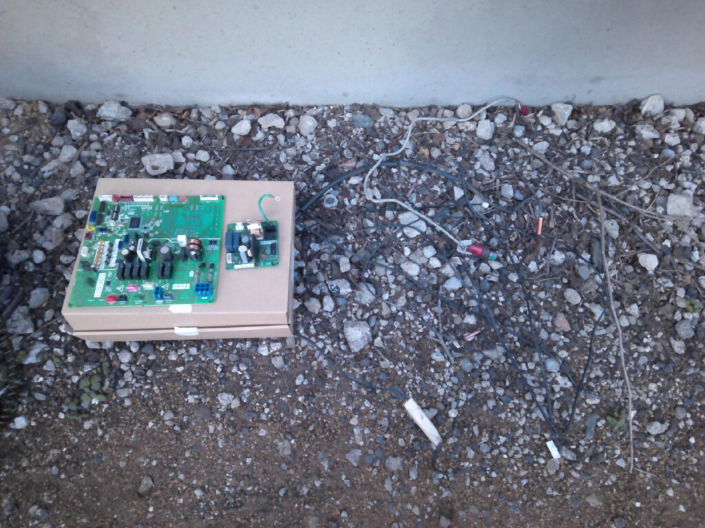 暖房運転していると、突然空調機が異常停止するとの御依頼でした。点検の結果、経年劣化による基板とセンサーの誤作動発報でした。作業上特に留意したのは初回の故障診断精度です。空調機には自己診断機能が付いています。今回液晶リモコンの異常表示には冷媒ガス循環不足系異常が表示されていました。なんだかおかしいなと思い、段階を踏んで各所点検していくと冷媒ガスは不足していない事が分かりました。最終的にはコンピューターの自己診断では無く、人間の点検診断となります。誤診断をすると空調機は直りませんし御客様にも御迷惑が掛かりますからね!人間が考えて答えを導き出す、これが修理の面白みでもありますよ!FTA(樹木枝分かれ分析)が効果的です。修理作業は無事完了致しました。