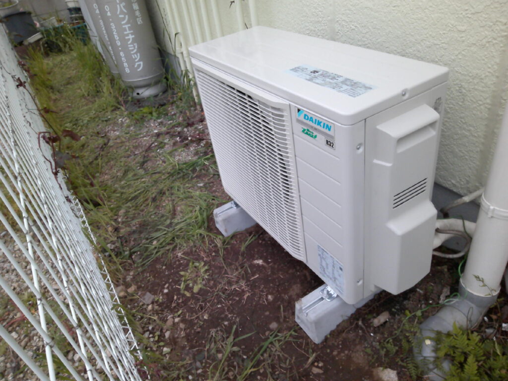 経年により、室外機内の圧縮機が故障してしまいました。圧縮機(車で言うエンジン)が故障した場合、空調機修理の中で最も高額となります。更新を御提案させて頂き、この度修理では無く更新をする運びとなりました。作業上特に留意した点は安全です。脚立使用作業時、資材や工具を落下させない様、又、御客様の私物に傷や汚れを付けない様しっかりと養生し注意しながら作業しました。事故なく・問題なく工事が完了しました。